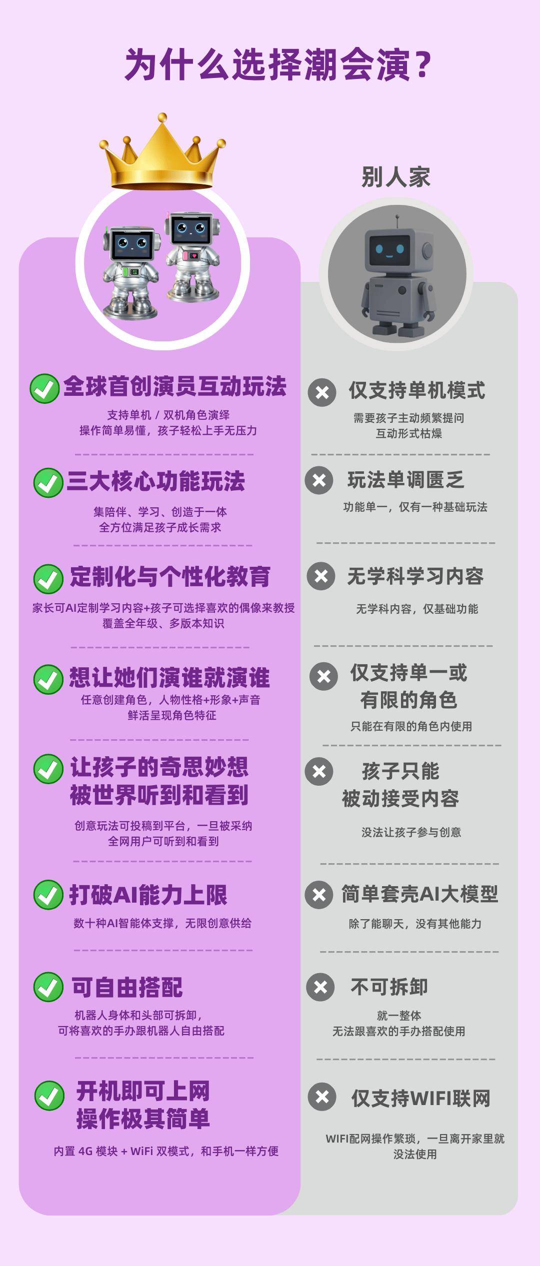但潮会演 AI 机器人,从根上就和它们不一样:它不是 “教孩子的工具”,而是 “陪孩子创造的伙伴”。